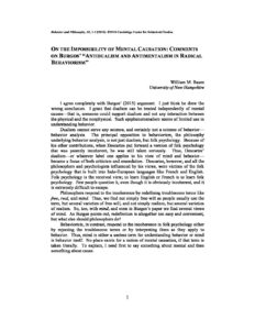Baum, William M. (2016) On the Impossibility of Mental Causation: Comments on Burgos’ “Antidualism and Antimentalism in Radical Behaviorism. Behavior and Philosophy, 44, 1-5